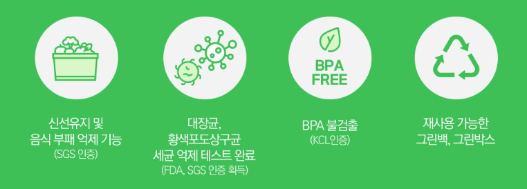 그린박스는 특수하게 고안된 제올라이트가 함유된 폴리에틸렌 성분으로 제작되어, 채소가 배출하는 숙성 가스인 '에틸렌'을 흡수합니다. 마치 채소의 노화를 늦춰주는 마법 같은 역할을 하는 거죠. 또한, 용기 내부의 미세한 환경 조절로 균번식을 억제하고 채소에 가장 적합한 습도를 유지해주어 수분 손실을 최소화하고 싱싱함을 지켜줍니다.