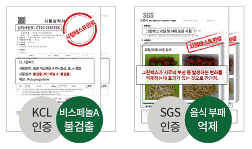데비마이어 그린박스의 탁월한 신선도 유지 능력은 단순히 느낌이 아니라, 과학적으로 입증된 결과로 국내외 시험성적서를 획득하였습니다. 미국 FDA 인증서와 한국 식약청 인증서를 모두 획득하였으며 30여개 이상의 SGS시험 성적서를 보유하고 있습니다. 이러한 유수의 연구 기관에서 진행된 실험을 통해, 그린박스에 보관된 채소가 일반 용기 대비 월등히 오래 신선함을 유지한다는 사실이 여러 차례 확인되었죠. 이는 단순한 주장이 아닌, 객관적인 데이터가 뒷받침하는 효과입니다.