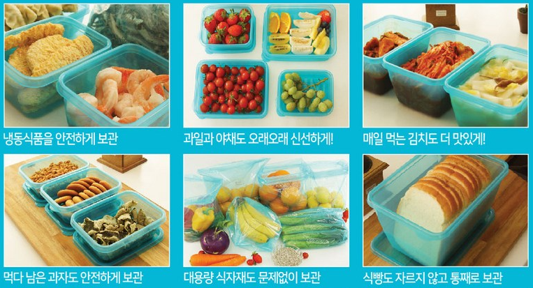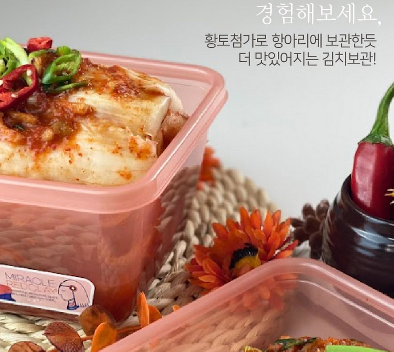 아, 고무 패킹이 없어서 더 좋아요!! 패킹있는거 실리콘에 때끼는거 아시죠? 그런거 없이도 충분히 신선함이 유지되더라구요! 그리고 남편이 생김치 좋아하는데 여기 보관하면 2주는 신선하게 김치도 보관가능해요! 아, 핑크로 된게 황토들어간 김치전용이라서 김치용으로 사려면 핑크색 사시구용^^