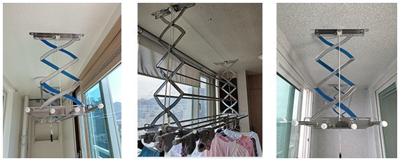 베란다 천장 빨래건조대 사양 및 제품 설치 사진