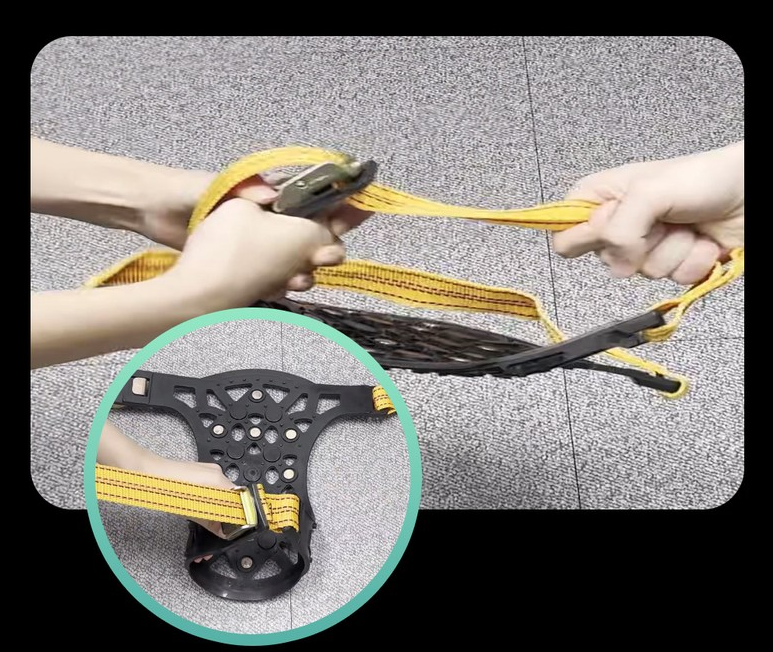 많은 분들이 스노우체인 사용 시 혼자 하기가 어렵고 까다롭다는 불편한 점을 말했습니다. 그 해답은 바로 버클형 이지기어 그립 부착시스템에 있습니다.