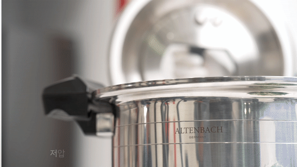 압력솥의 경우 요리과정을 확인하지 못해 타거나 바닥이 눌러붙잖아요? 조리 중 확인을 하고 싶으면 증기 배출 후 압력이 완전히 내려간 후에 뚜겅을 열어야 해서 시간이 몇배로 듭니다. 알텐바흐의 세계최초 저압특허는 조리 중 언제든지 간편하게 뚜껑을 열고 재료 추가는 물론 조리 과정 확인과 증기배출까지 간편하게 해결됩니다.