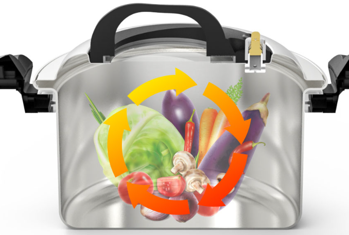 저압냄비는 수증기의 밀도가 높아져 열전달이 잘 되고 더 짧은 시간에 재료를 익힐 수 있어요. 갈비찜 할때 고기 익을때까지 푸~욱 익히면 채소는 형체도 없이 사라지거나 반대로 채소는 적당하게 익었는데 고기가 덜 익어 질긴 경험 다들 있으시죠? 저압냄비는 최적의 압력으로 열전달이 빠르게 되어 오버쿡되거나 덜 익을수가 없습니다!