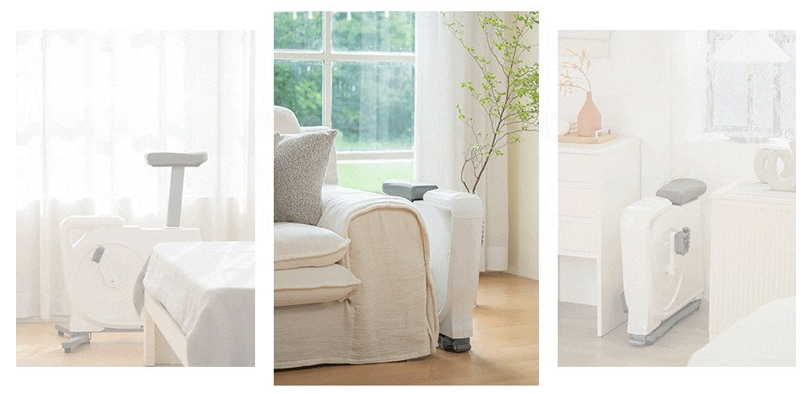 이 실내자전거는 접이식 실내자전거로 접으면 한 뼘만하고 펼치면 실내자전거로 변신하는 공간효율이 높은 실내자전거입니다. 원룸처럼 공간이 작은 곳에서도 물론이고 하얀 색상이 어떤 곳에 배치해도 인테리어 효과를 주는 실내자전거랍니다.