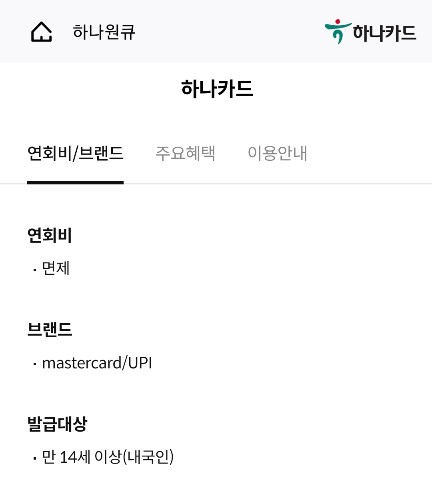 | 국내 최대 1.3% 하나머니 적립 해외 항공 면세 여행 3% 하나머니 적립 |