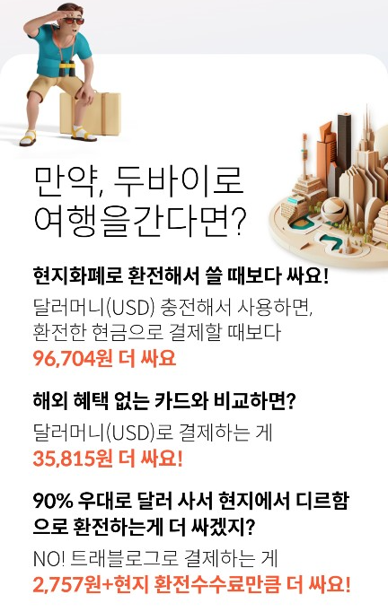 트래블로그 카드는 해외원화 결제서비스를 제공하지 않기 때문에 수수료 발생에 대한 염려는 하지 않아도됩니다.
