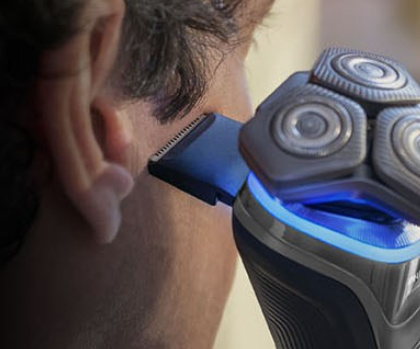 필립스 면도기는 팝업 트리머가 내장되어 있어서 구렛나루 정리도 가능하며, 스마트 클릭기능으로 헤드를 교체하면 완전히 면도하지 않고 어느정도 남겨둔 수염으로 멋스럽게 면도도 가능합니다.