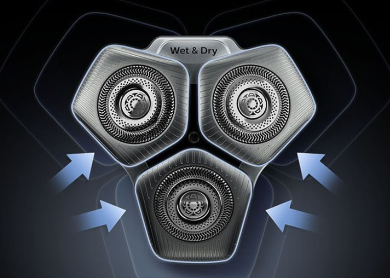 필립스만의 혁신적인 디자인인 오각형 헤드 디자인은 모든 방향과 굴곡을 커버하여 코밑, 턱아래, 닿기 어려운 부분까지 더 깊이 밀착 시켜줍니다. 플렉스헤드와 오각형헤드의 기술이 결합하여 얼굴 곡선과 목, 턱선 등 면도기가 닿기 어려운 굴곡의 수염까지 세밀하게 면도해 줍니다.